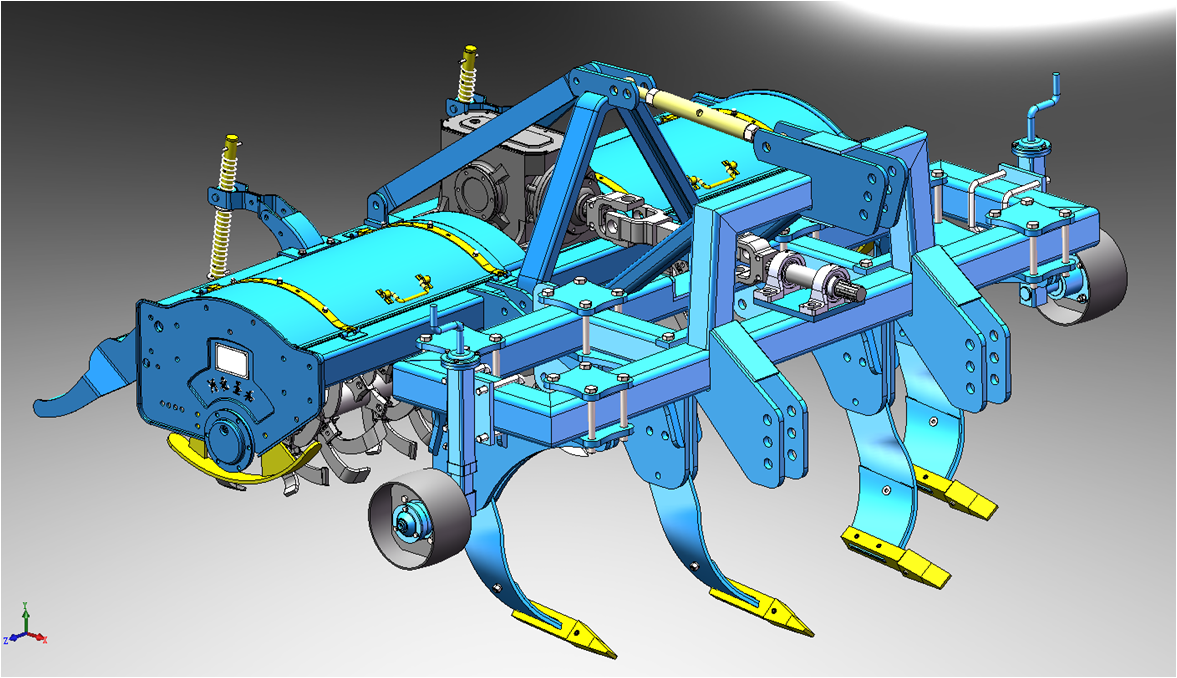 1SZL系列深松整地聯(lián)合作業(yè)機是一種新型土壤深松和耕整與一體的機具。該機打破以往只深松不耕整的傳統(tǒng)農(nóng)藝,一方面滿足對于干旱鹽堿地塊的深松,另一方面滿足農(nóng)作物播種前土壤的耕整。該機由前部深松機,后部耕整機組合而成。深松鏟采用特種弧面倒梯型設(shè)計,作業(yè)時不打亂土層,不翻土,實現(xiàn)全方位深松,形成貫通作業(yè)行的“鼠道”,適用于旱作土地打破犁底層,加深耕作層,并適用于治理黏重土質(zhì)、鹽堿、漬澇、干旱缺水區(qū)、緩坡地的水土流失等中低產(chǎn)田,具有明顯的蓄水保墑效果;該機適用于不同土質(zhì)及秸稈覆蓋量的土壤進行作業(yè),整機采用高強度框架結(jié)構(gòu),主梁離地、梁與梁之間距離均超過60厘米,避免堵塞,特別是在秸稈覆蓋量大的地塊作業(yè)不會產(chǎn)生壅堵,深松鏟具有高強度和高耐磨性,使整機強度全面提高。前深松,后耕整,一次作業(yè)后地表平整、土壤蓬松,達到種床要求,減少農(nóng)民耕作成本。
