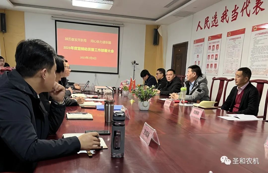 2023年2月9日,河北圣和農(nóng)業(yè)機械有限公司“2023年度營銷動員暨工作部署大會”在圣和辦公大樓二樓會議室隆重召開。公司總部領(lǐng)導(dǎo)與營銷中心全體人員參會,生產(chǎn)中心、研發(fā)中心及各職能部門領(lǐng)導(dǎo)列席會議。