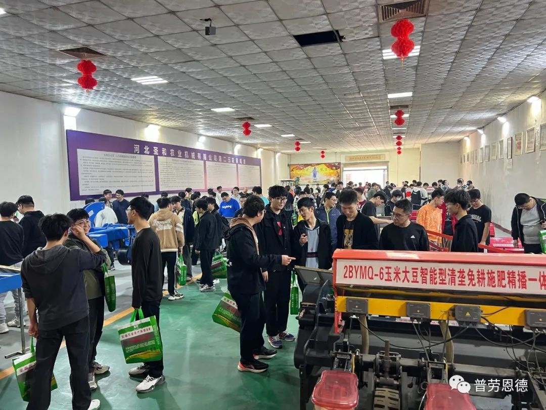 2023年3月29日,河北農大機電工程學院郝建軍副院長、趙樹鵬副院長,博導,教授,院系師生等一百三十多人到訪河北圣和農業(yè)機械有限公司參觀指導。