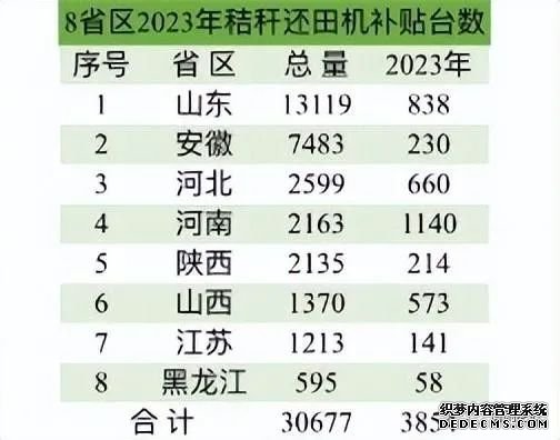 8省區(qū)2023年補(bǔ)貼秸稈粉碎還田機(jī)數(shù)量