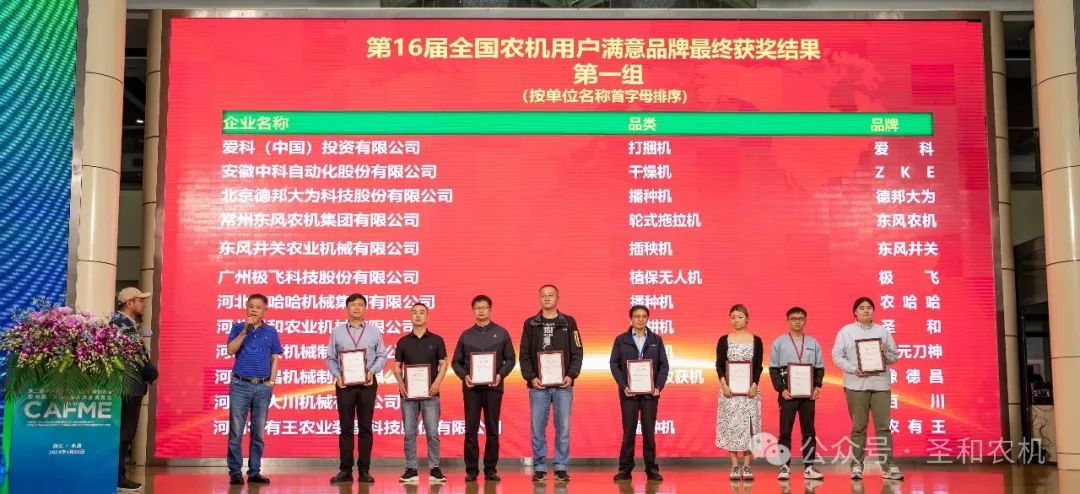 在第八個“中國品牌日”即將到來之際,由農(nóng)業(yè)機械雜志社、中國農(nóng)業(yè)機械學(xué)會普及工作委員會、中國農(nóng)業(yè)機械學(xué)會市場分會、中國包裝和食品機械有限公司共同承辦的“2024 第二屆農(nóng)機品牌大會”,于2024年4月27日在浙江永康隆重召開,同期舉辦了2024中國丘陵山區(qū)農(nóng)業(yè)機械博覽會暨中國(永康)國際農(nóng)林裝備博覽會、2023—2024年度第16屆全國農(nóng)機用戶滿意品牌頒獎儀式。河北圣和農(nóng)業(yè)機械有限公司營銷管理中心大區(qū)經(jīng)理曹彥濤代表圣和公司參加大會,并出席頒獎儀式領(lǐng)獎。