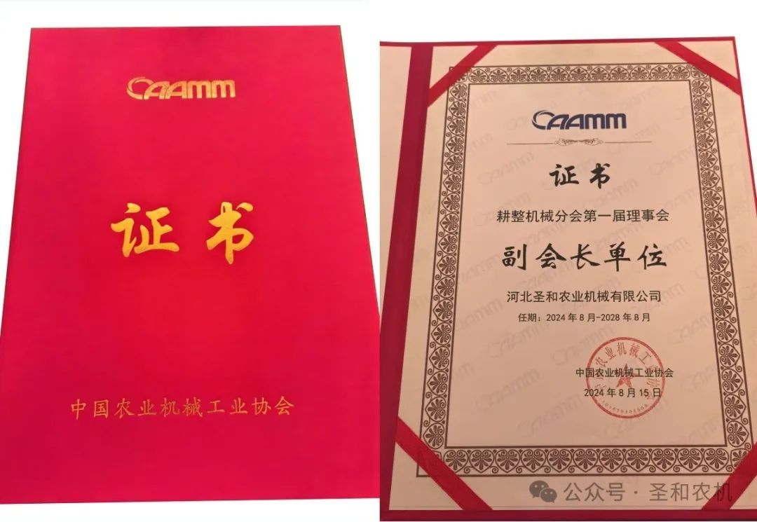 熱烈慶祝圣和公司當(dāng)選耕整機(jī)械分會第一屆理事會副會長單位