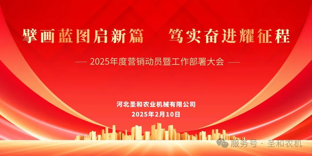2025年2月10日,河北圣和農(nóng)業(yè)機械有限公司隆重開“2025年度營銷動員暨工作部署大會”。圣和公司董事長王新芳、總經(jīng)理師西峰、副總經(jīng)理王帥、總經(jīng)理助理周振剛以及生產(chǎn)中心總經(jīng)理張同斌、研發(fā)中心總經(jīng)理徐秀霞、生產(chǎn)中心副總經(jīng)理柳子侃、品質(zhì)部經(jīng)理雷旭等各職能中心高層領(lǐng)導(dǎo)與全體營銷人員齊聚一堂,共繪圣和公司2025年高質(zhì)量發(fā)展的宏偉藍(lán)圖。