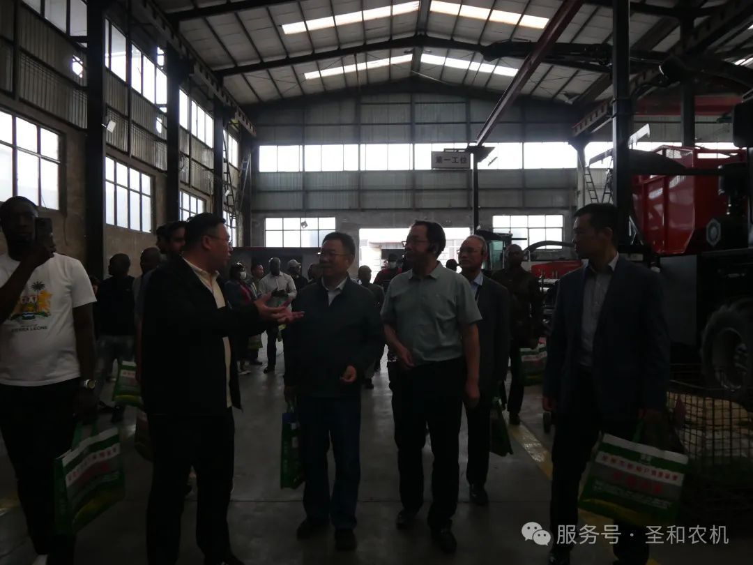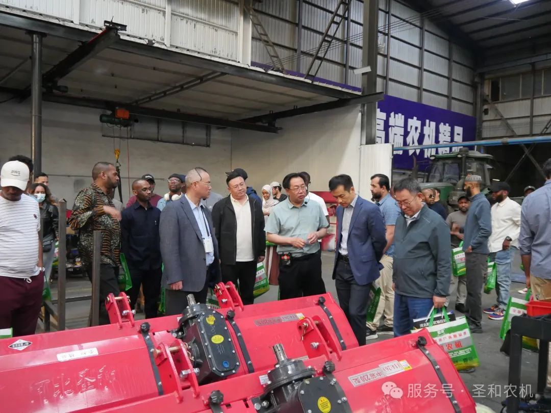 在考察過程中,河北圣和農(nóng)業(yè)機械有限公司營銷管理中心總經(jīng)理郭廣彥、副周經(jīng)理王周廣熱情接待了考察團,并詳細介紹了公司的發(fā)展歷程、產(chǎn)品線、技術(shù)創(chuàng)新成果以及在國際市場上的應(yīng)用情況??疾靾F成員們深入生產(chǎn)車間,實地觀摩了先進的農(nóng)業(yè)機械生產(chǎn)流程,對各類農(nóng)業(yè)機械的制造工藝和技術(shù)原理表現(xiàn)出濃厚的興趣。