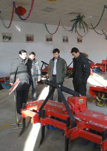 河南豪豐劉董事長(左三)、德州華北農機張總(左一)、定州開元白總(左二)到公司參觀、探討、調研