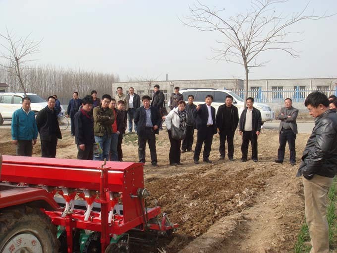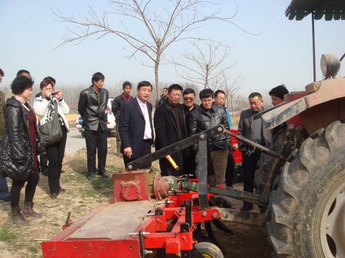 3月23日在河北省農機推廣站孫東法站長的陪同下,上海市農機推廣總站夏海榮站長、上海市農機推廣站甘俊彥科長、王學云科長一行來我公司參觀深松機項目,隨行來的還有上海各區縣負責農機推廣的領導。一行人參觀了公司產品展廳后來到公司機具實驗基地,現場觀看了公司深松機、旋播機的演示作業,期間公司王新芳董事長向各位領導詳細講解了深松機的應用原理、作業效果以及適用范圍,各位領導對此次現場演示作業做出了很高評價,對公司產品也抱有很高期望。