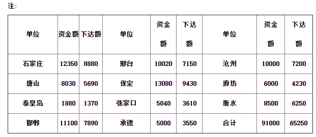 | 承德縣 | 500 | 350 | 滄州大港區 | 150 | 100 | 衡水開發區 | 100 | 70 |