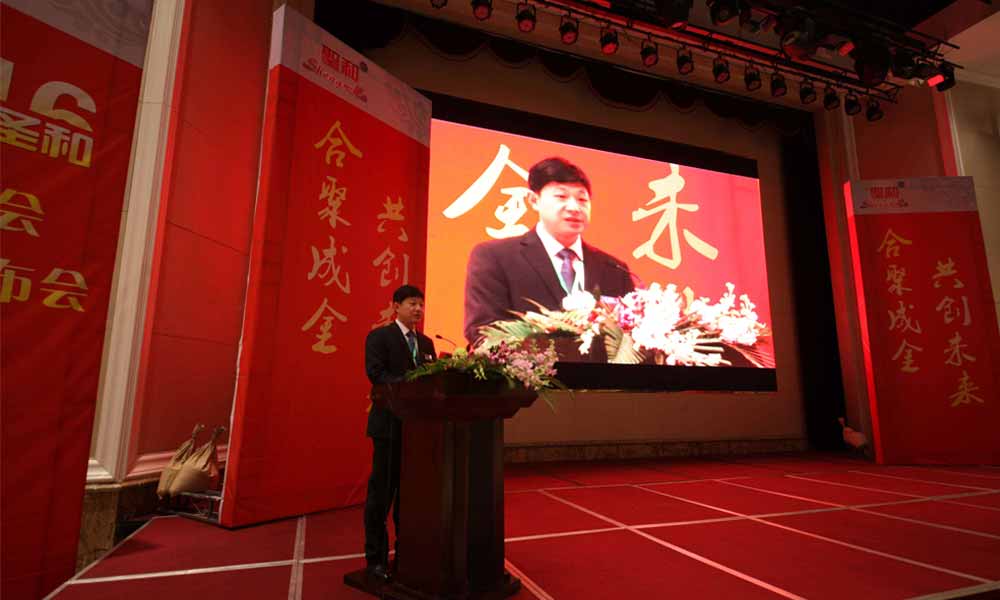 河北圣和董事長王新芳首先為大會做主題為“合聚成金、共創(chuàng)未來”的致辭。他表示,過去的十年,圣和公司面對充滿競爭激烈的市場環(huán)境,以追求穩(wěn)健增長為目標,順應市場經(jīng)濟發(fā)展形勢,以創(chuàng)新發(fā)展觀為導向,堅持以人為本,大力開展企業(yè)文化建設,形成公司與經(jīng)銷商、供應商、終端客戶多贏的良好局面,促進了公司的健康發(fā)展。公司自2015 年起,制定了5-10年的中長期戰(zhàn)略發(fā)展規(guī)劃,2015年,公司在行業(yè)形勢發(fā)展嚴峻的形勢下,取得了較好的經(jīng)營業(yè)績,實現(xiàn)了五年創(chuàng)新發(fā)展的開門紅,成為國內(nèi)旋耕機和秸稈還田機領域的領頭企業(yè)。