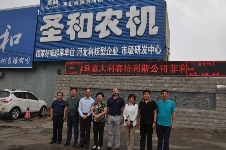 2017年6月13日,天空時(shí)不時(shí)下著小雨,在這小麥?zhǔn)崭畹霓r(nóng)忙時(shí)節(jié),來(lái)自意大利賽特利斯公司菲利普先生及鐘振修先生到圣和公司參觀洽談,受到圣和公司董事長(zhǎng)王新芳及總經(jīng)理師西峰熱情接待,并全程陪同詳細(xì)介紹了圣和公司企業(yè)發(fā)展及產(chǎn)品制作流程。菲利普先生剛進(jìn)圣和就被圣和公司的企業(yè)文化深深吸引,在文化墻上仔細(xì)聽(tīng)取鐘先生的翻譯,用我們聽(tīng)不懂的意大利語(yǔ)表達(dá)并連連點(diǎn)頭,隨后董事長(zhǎng)王新芳講解了企業(yè)文化的內(nèi)涵、組織架構(gòu)和未來(lái)的規(guī)劃生產(chǎn)流程和銷售網(wǎng)絡(luò)等等,做了簡(jiǎn)單的講解,菲利浦先生認(rèn)真聽(tīng)取也對(duì)圣和有了初步的了解,并對(duì)王總的發(fā)展經(jīng)營(yíng)理念表示贊同,隨后參觀了公司展廳對(duì)產(chǎn)品的技術(shù)問(wèn)題進(jìn)行了相關(guān)討論,并對(duì)公司的熱銷產(chǎn)品和設(shè)計(jì)給予了高度評(píng)價(jià)和贊嘆!王總非常愉快的與飛利浦先生共進(jìn)午餐,飛利浦先生也對(duì)圣和公司的熱情好客表示非常的滿意,他表示從企業(yè)文化就能看出圣和公司是一個(gè)特別有責(zé)任感和使命感的年輕企業(yè),愿與此深入了解和合作,建立友誼與互信,并高興地在公司門前合影留念。