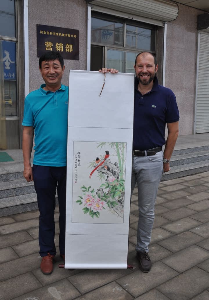 下午在董事長(zhǎng)王新芳與總經(jīng)理師西峰陪同下觀看了企業(yè)宣傳片,隨后參觀了生產(chǎn)現(xiàn)場(chǎng),菲利普先生在參觀過(guò)程中時(shí)時(shí)拿出手機(jī)不停地照相并對(duì)圣和的管理以及發(fā)展表示驚嘆,一個(gè)農(nóng)機(jī)企業(yè)可以做到這些真的很不容易,王總詳細(xì)講解了產(chǎn)品制作過(guò)程和現(xiàn)在設(shè)備的先進(jìn)性,從自動(dòng)化焊接、數(shù)控折彎、大型壓力機(jī)到激光切割機(jī)、智能化噴涂線、國(guó)際先進(jìn)的流水組裝線,圣和公司一步步依靠實(shí)力和技術(shù)手段,不斷地提高產(chǎn)品質(zhì)量,升級(jí)產(chǎn)品技術(shù),提高行業(yè)市場(chǎng)競(jìng)爭(zhēng)力,夯實(shí)產(chǎn)品品質(zhì)和研發(fā)新產(chǎn)品!近年來(lái)在不斷進(jìn)取的努力下,圣和產(chǎn)品不斷地改變過(guò)去傳統(tǒng)的制作流程和銷售模式,與德國(guó)普勞恩德PLAUERN(河北)農(nóng)業(yè)機(jī)械有限公司合作,技術(shù)資源共享,在產(chǎn)品品質(zhì)和質(zhì)量上上了一個(gè)很大的臺(tái)階,特別是散件組裝產(chǎn)品的生產(chǎn)和技術(shù)打破傳統(tǒng),引領(lǐng)行業(yè),早已成為業(yè)內(nèi)佳話。菲利普先生與鐘振修先生紛紛表示圣和的實(shí)力著實(shí)令人驚嘆,他們也和王總一樣有著共同的信仰,圣和十年的快速發(fā)展,用很短的時(shí)間是很難體會(huì)的,正是圣和用心做事的風(fēng)范,圣和員工的認(rèn)真負(fù)責(zé),對(duì)工作的認(rèn)真態(tài)度和標(biāo)準(zhǔn)化的準(zhǔn)則保證著各個(gè)生產(chǎn)線線線相接,這在一般企業(yè)是很難看到的,也是少有的,愿與圣和建立更進(jìn)一步的交流與合作。王總表示道:今后圣和公司也會(huì)更好地立足、緊貼中國(guó)農(nóng)機(jī)市場(chǎng),高效開發(fā)適應(yīng)中國(guó)差異化的優(yōu)質(zhì)農(nóng)業(yè)機(jī)械、快速應(yīng)對(duì)客戶需求,以優(yōu)良的品質(zhì)、合理的價(jià)格、良好的信譽(yù)、完善的服務(wù),不斷創(chuàng)造和研發(fā)實(shí)用性強(qiáng)的新產(chǎn)品,為促進(jìn)中國(guó)農(nóng)業(yè)進(jìn)一步發(fā)展,夯實(shí)基礎(chǔ),服務(wù)三農(nóng)!最后雙方在非常愉快友好的氛圍下達(dá)成了初步合作意向,董事長(zhǎng)王新芳臨別贈(zèng)送了菲利普先生和鐘振修先生具有中國(guó)特色的工筆畫表示圣和對(duì)菲利普先生的熱情歡迎。