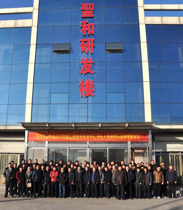 2017年12月16日上午,江蘇省豐縣2017年新型職業(yè)農(nóng)民合作社帶頭人培訓(xùn)營70余名學(xué)員,在豐縣農(nóng)機(jī)局市場辦蔣主任,豐縣農(nóng)機(jī)推廣站蔣站長,豐縣三農(nóng)公司負(fù)責(zé)人劉豐經(jīng)理帶領(lǐng)下,來到河北圣和農(nóng)業(yè)機(jī)械有限公司考察學(xué)習(xí)。圣和公司總經(jīng)理師西峰熱情接待了全體學(xué)員,并陪同參觀了公司生產(chǎn)工藝過程,營銷中心技術(shù)人員以“今天攜手合作 明天成就夢想”為題,作了專題技術(shù)講座。
