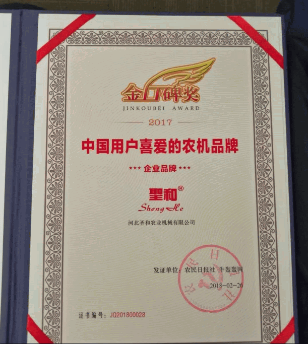 從“為您點贊”、“贊不絕口”“口口相傳”到“傳締匠心”。金口碑獎作為農業行業里有影響力的活動之一,得到了廣大農民朋友的認可和農機農藥企業的積極參與。圣和公司感謝長久以來支持關注圣和的朋友們,每一份的投票都是農民朋友和用戶朋友們表達的一份至信至愛,圣和將不辱使命,以百姓心為心,以人民需為本,做中國好農機,創造最值得信賴的優質的農機品牌!