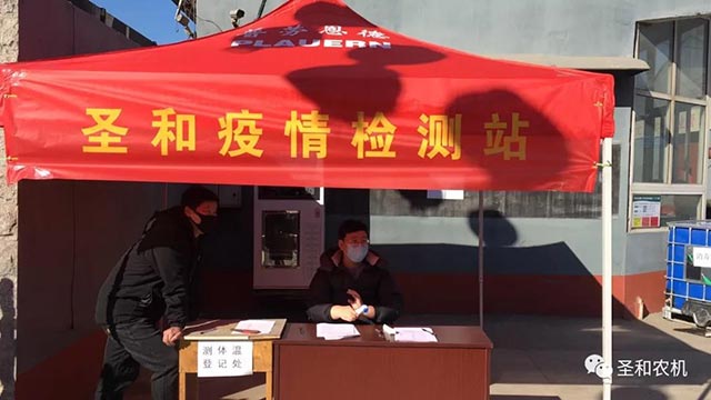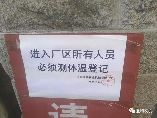 河北圣和農(nóng)業(yè)機(jī)械有限公司嚴(yán)格遵守各級(jí)政府的疫情防控安排,嚴(yán)格做好復(fù)工前的準(zhǔn)備工作。主要措施如下:1、成立疫情防控領(lǐng)導(dǎo)小組,逐級(jí)建立防疫工作組,層層防控。2、通過(guò)網(wǎng)絡(luò)、宣傳版與電子大屏播放等多種手段,宣傳貫徹防疫制度與防疫知識(shí),加強(qiáng)員工的監(jiān)督與管理。3、在公司門口建立二十四小時(shí)值班的疫情防控點(diǎn)、應(yīng)急隔離室、嚴(yán)格限制外來(lái)人員與車輛進(jìn)入廠區(qū),建立職工每日排查制度。4、統(tǒng)計(jì)與購(gòu)買防疫物資:口罩、防護(hù)眼鏡、橡膠手套、消毒酒精、洗手液等,每個(gè)車間配備廢棄口罩收集桶、消毒酒精、洗手液等個(gè)人防護(hù)用品。5、每天對(duì)全廠區(qū)、全覆蓋進(jìn)行消毒殺菌。6、建立健全防疫規(guī)程和制度。制定了完備的錯(cuò)時(shí)上下班、每天的體溫監(jiān)測(cè)、分散就餐制度等,減少人員聚集,加強(qiáng)室內(nèi)通風(fēng)。7、建立針對(duì)員工發(fā)燒、乏力、干咳、呼吸困難等癥狀的應(yīng)急預(yù)案,隔離措施與應(yīng)急交通送醫(yī)路線、定點(diǎn)醫(yī)院聯(lián)系等預(yù)案。