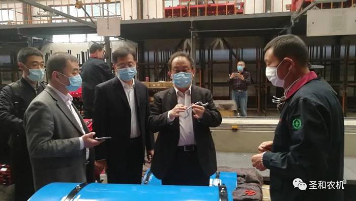 6月1日,河北省農業機械化管理局戎美瑞局長、張局長,河北省鑒定總站孫站長,河北省推廣總站史站長一行到圣和公司調研指導工作。領導們關注疫情期間圣和生產情況,對公司的生產管理與產品工藝給予了高度肯定,同時也對我公司進一步的提升給出了建議。