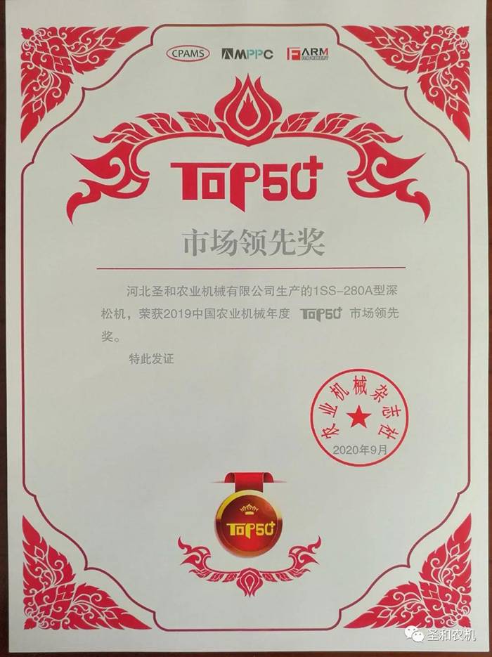9月27日,2020年第八屆中國農機高端論壇(CAIF 2020)暨 2019 中國農業機械年度 TOP50+頒獎盛典”在北京舉辦。大會期間圣和公司產品1SS-280A型深松機榮獲“市場領先獎”。