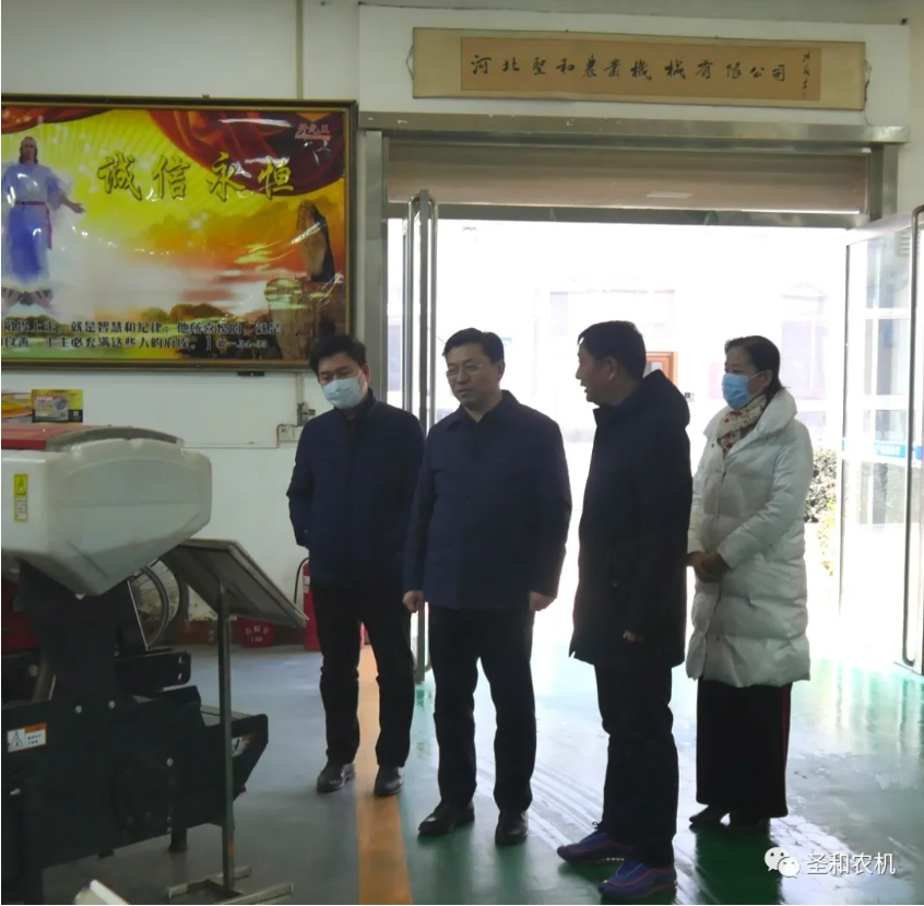 2022年2月16日,河北省農(nóng)機(jī)局戎局長(zhǎng),劉副局長(zhǎng),省推廣總站史站長(zhǎng),邢臺(tái)市趙局長(zhǎng)蒞臨圣和公司調(diào)研!公司董事長(zhǎng)王新芳熱情接待!