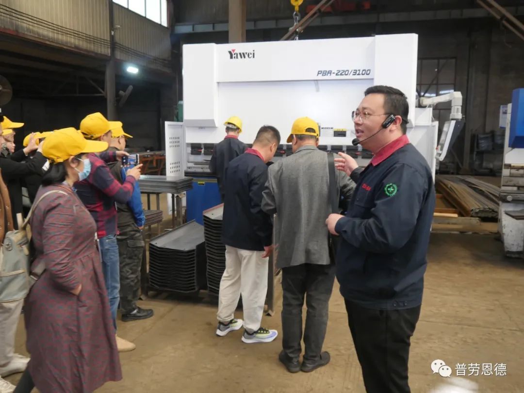會(huì)議前,營(yíng)銷(xiāo)管理中心副總經(jīng)理王周廣帶領(lǐng)經(jīng)銷(xiāo)商們參觀了圣和公司。