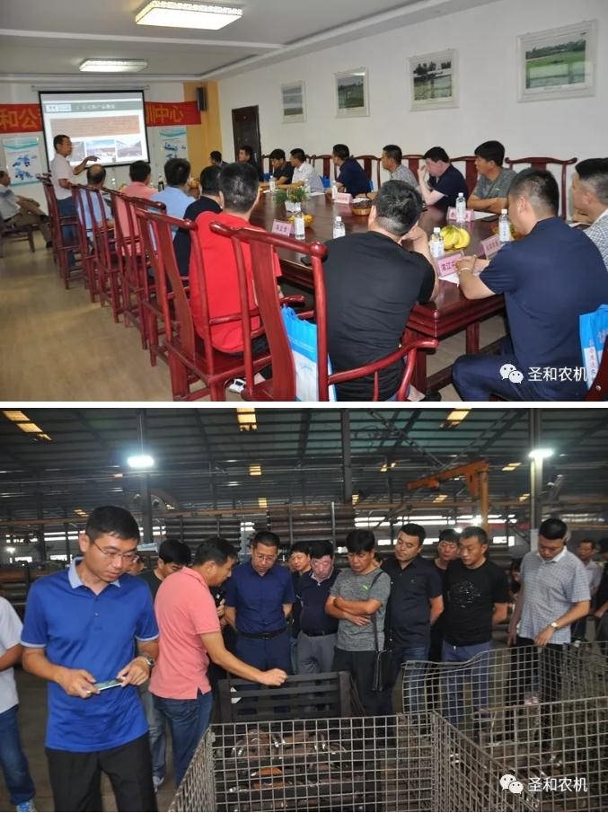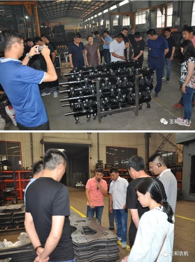 公司董事長王新芳先生及團隊熱情接待,并在公司會議室交流探討。公司董事長王新芳致歡迎詞,介紹了企業概況、發展理念和發展目標,雙方在祥和氣氛中進行農機市場分析與交流。隨后進行工廠參觀考察,參觀的過程中董事長親自介紹每一個生產制作環節,參觀完畢后客人對河北圣和農業機械有限公司管理模式、生產工藝、給以高度評價。